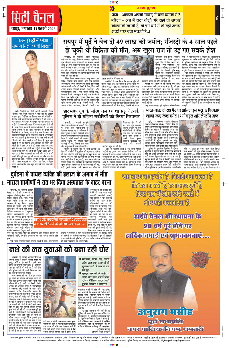 17 Feb 2026 Page: 8 February 17, 2026 5 6 7 8 Page 1Page 2Page 3Page 4Page 5Page 6Page 7Page 8 × 17 Feb 2026 12345678 Download PDF File << First << 8 >> Last >> Page no 1Page no 2Page no 3Page no 4Page no 5Page no 6Page no 7Page no 8